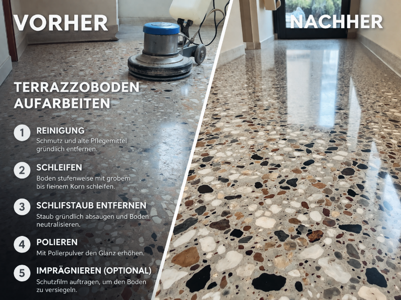 Terrazzo — sanieren — wirder voller Glanz.